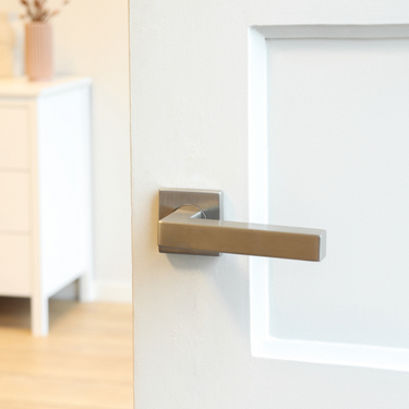 Moderner Türgriff aus Edelstahl mit quadratischer Rosette
