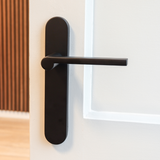 Der Türgriff Caserta ist in Mattschwarz gehalten und verfügt über eine abgerundete Rosette ohne Schlüsselloch. Sein schlankes Design mit weichen Linien verleiht ihm eine ruhige und elegante Ausstrahlung. Dadurch passt er sowohl in moderne Interieurs als auch in schicke Hotels oder in Einrichtungen im Japandi-Stil, wo Schlichtheit im Vordergrund steht.