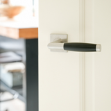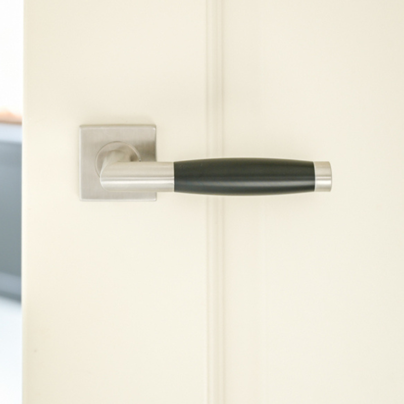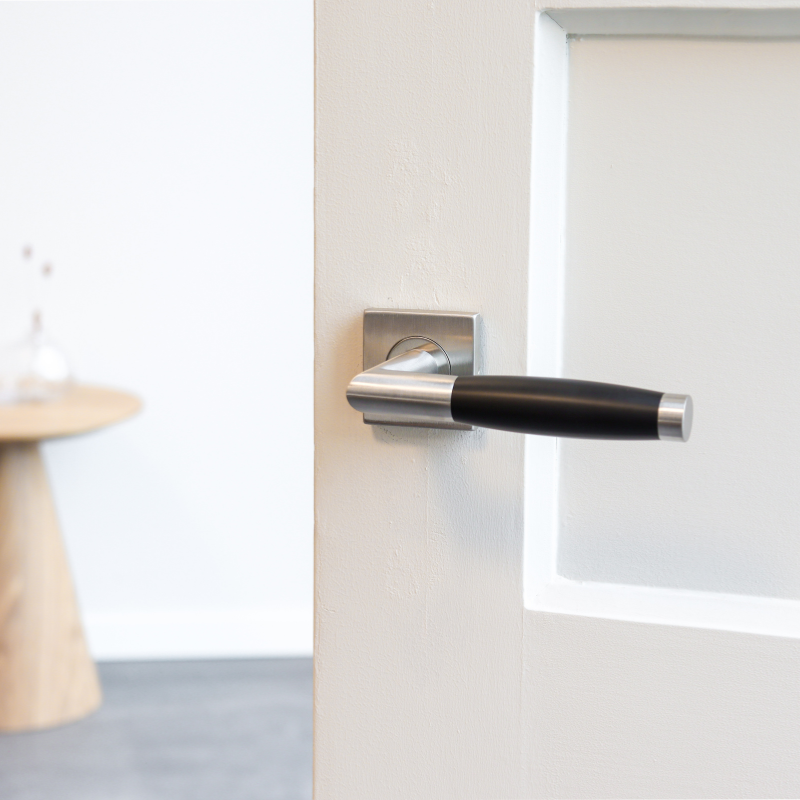 Moderner und eleganter Türgriff aus Edelstahl mit quadratischer Rosette