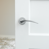 Der Türgriff Lodini ist aus Edelstahl gefertigt und mit einer runden Rosette versehen. Sein elegantes Design und der sanfte Glanz des Stahls verleihen ihm eine ruhige und zeitlose Optik. Dadurch passt er perfekt in ein modernes Interieur, fügt sich aber auch harmonisch in ein klassisches Zuhause ein.