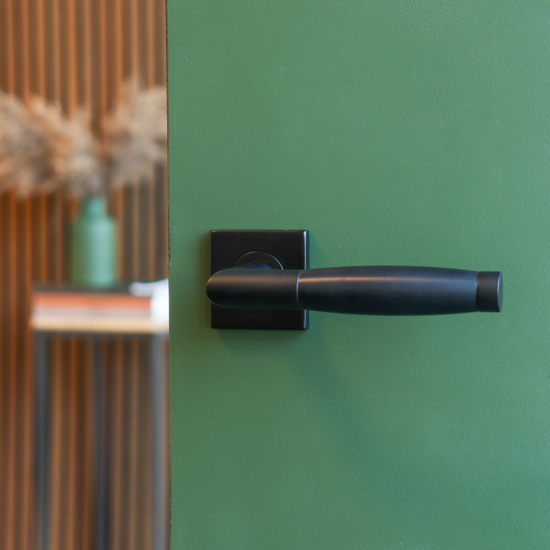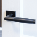 Die quadratische Rosette verleiht dem Türgriff ein modernes und robustes Aussehen, während die mattschwarze Oberfläche für ein luxuriöses und edles Erscheinungsbild sorgt. Dank seines schlanken, minimalistischen Designs ist dieser Türgriff die ideale Wahl für Interieurs, die einen modernen und dezenten Look bevorzugen, und passt gleichzeitig hervorragend zu klassischen oder ländlichen Einrichtungsstilen.