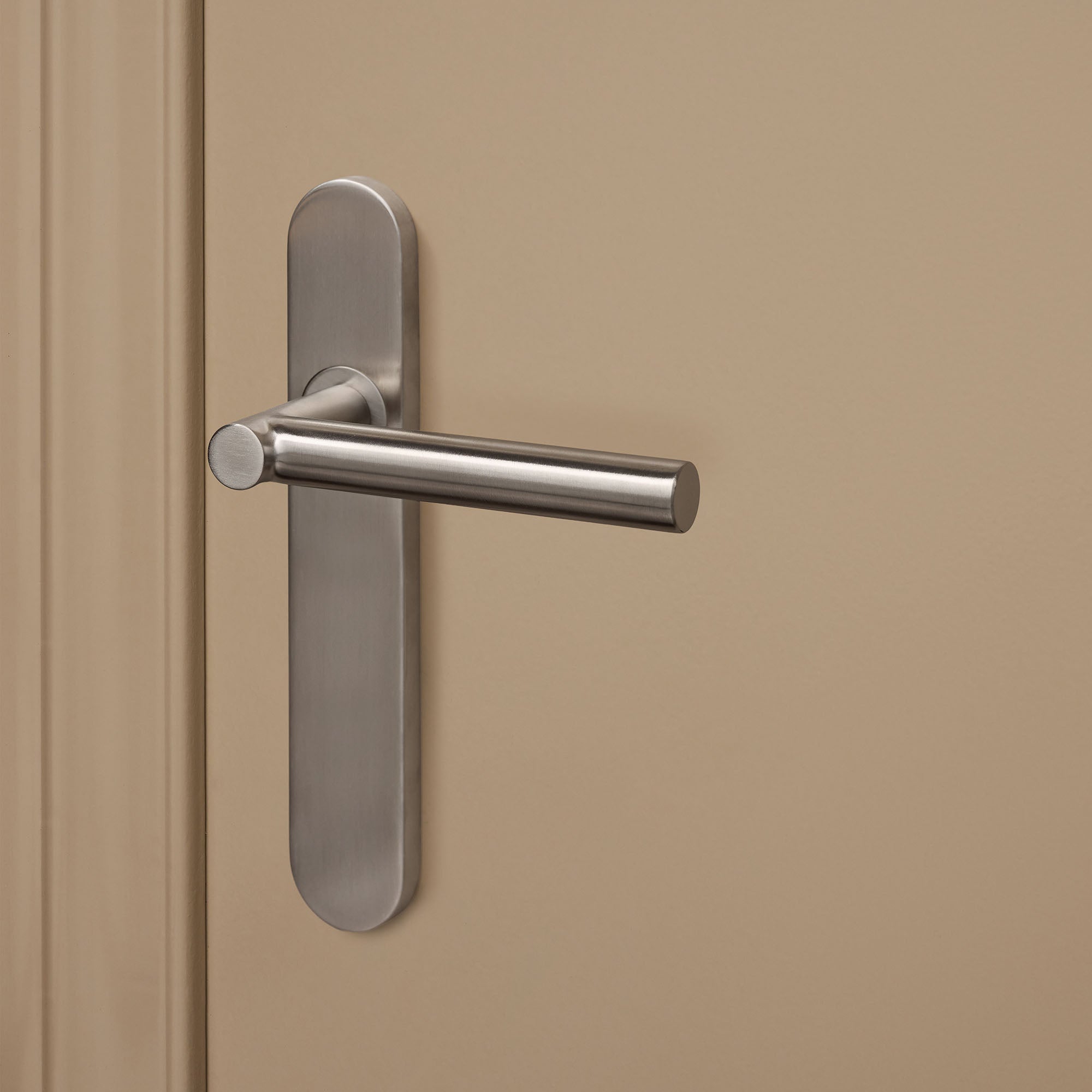 Der Grosetto-Türgriff aus Edelstahl mit abgerundeter Rosette ist eine stilvolle und zeitlose Wahl für Ihre Innentür. Die weichen Linien und die gebürstete Oberfläche verleihen diesem Griff eine ruhige Optik, die perfekt zu skandinavischen, japanischen, minimalistischen und natürlichen Einrichtungsstilen passt.