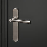 Der Griff verjüngt sich dezent und liegt angenehm in der Hand. Die abgerundete Rosette sorgt für einen sauberen Übergang zur Tür und verdeckt eventuell vorhandene Bohrlöcher. Die Kombination aus Form und Oberfläche ergibt ein elegantes und modernes Erscheinungsbild.