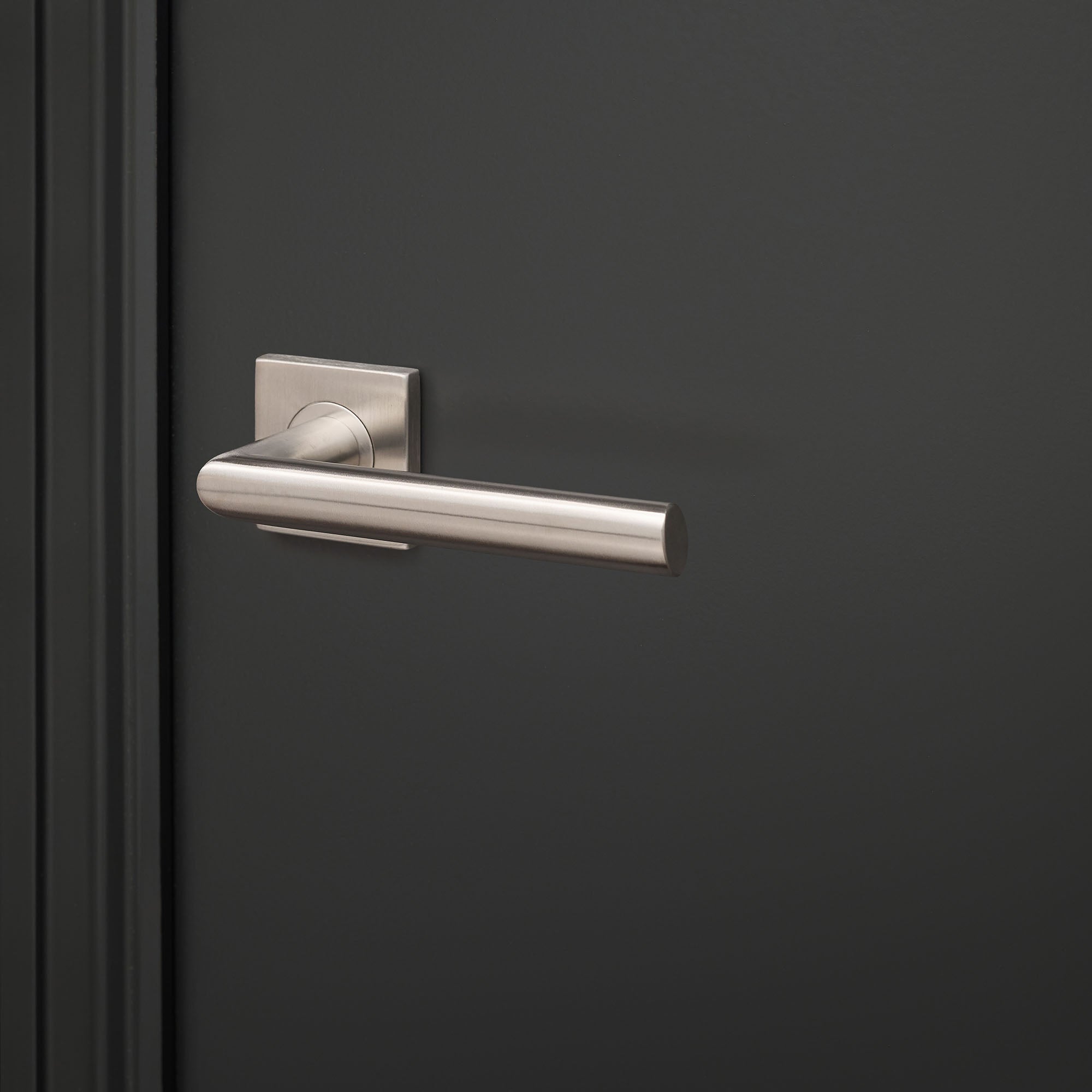 Die quadratische Rosette verleiht dem Griff ein elegantes, modernes Design. Durch die sanfte Drehung des Griffs liegt er überraschend angenehm in der Hand. Der gebürstete Edelstahl verleiht dem Türgriff eine zeitlose Optik – perfekt für ein minimalistisches Interieur mit unverwechselbarem Charakter.