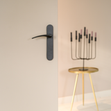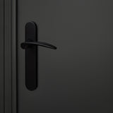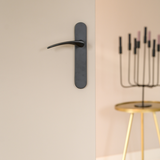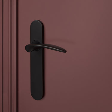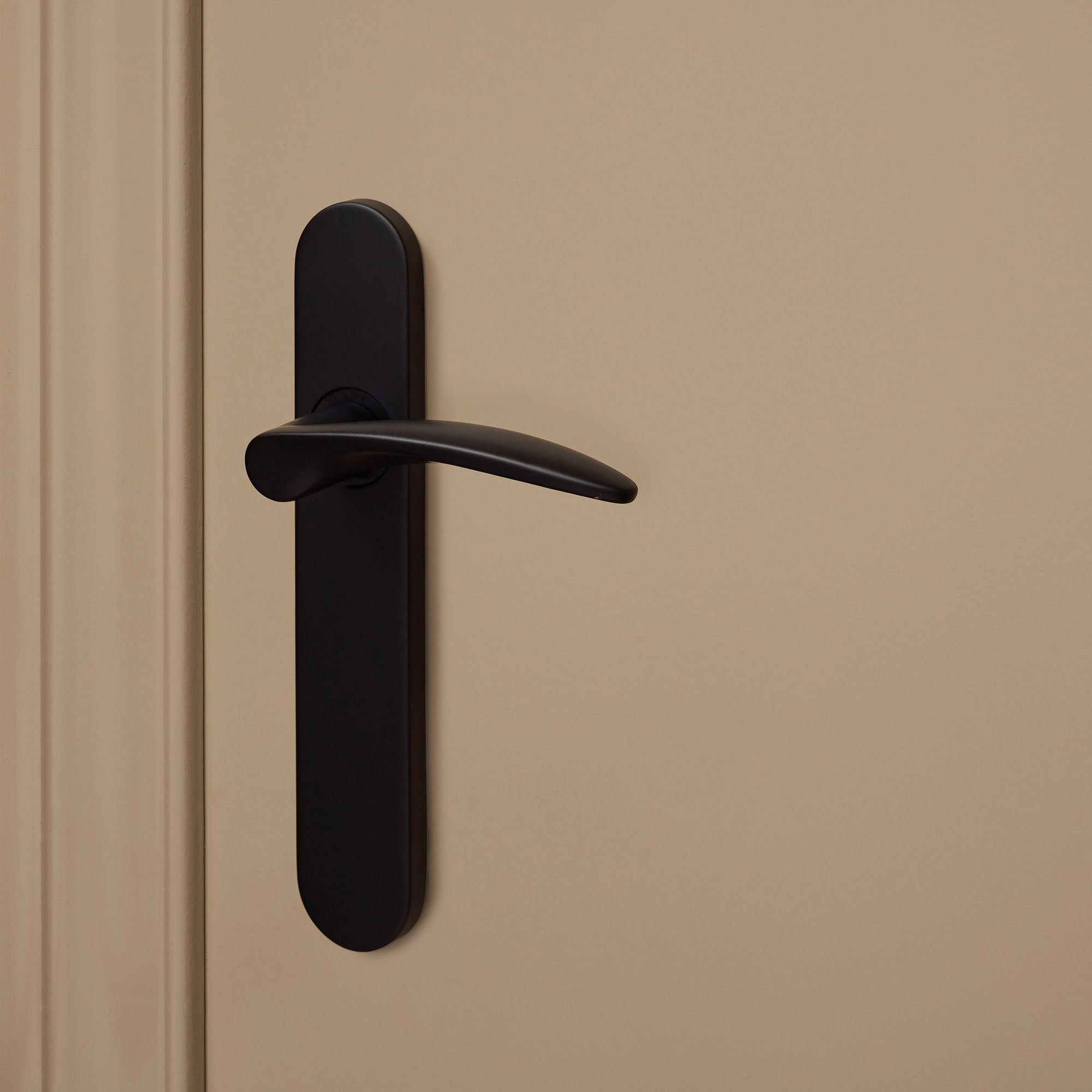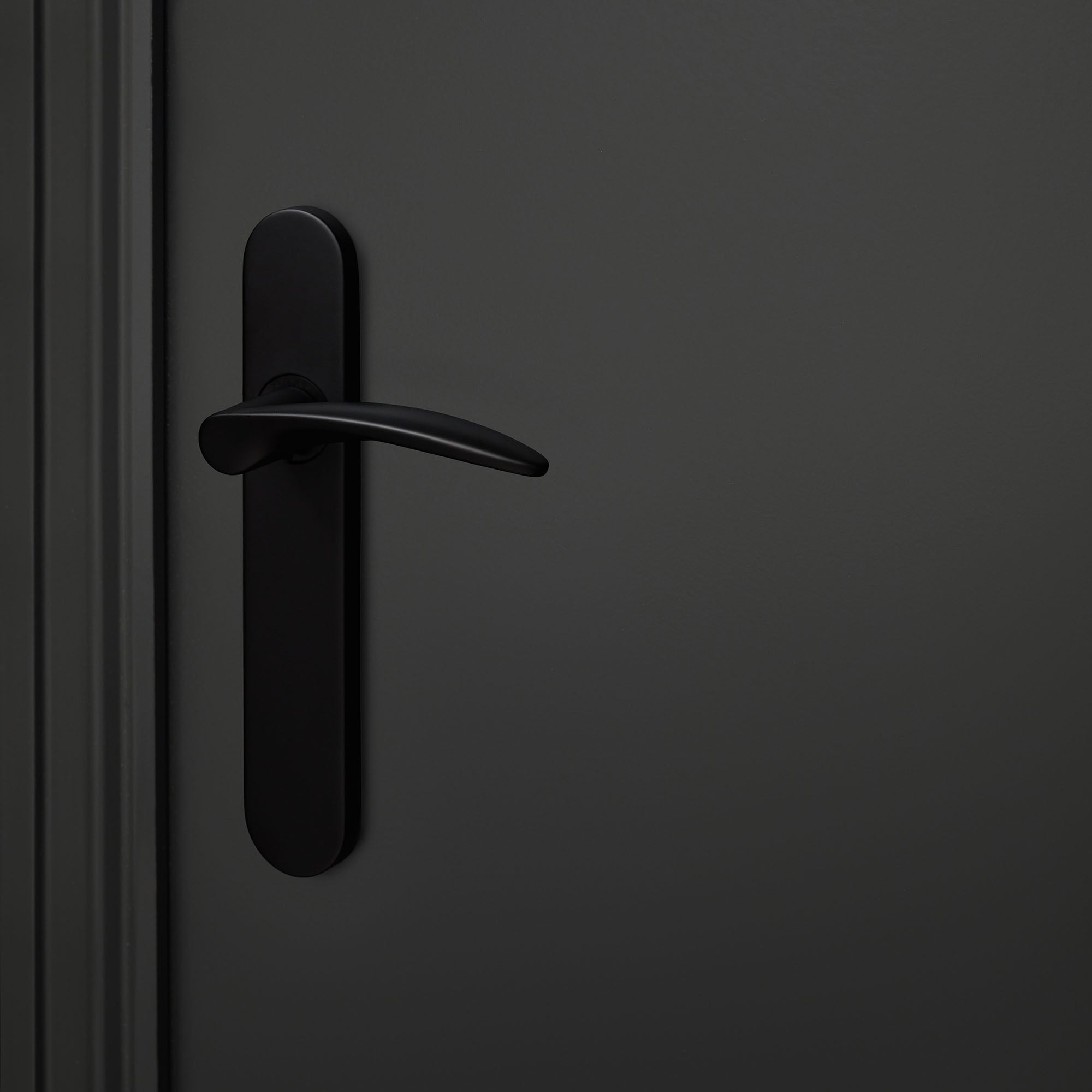 Der Türgriff Lodini ist in Mattschwarz gehalten und verfügt über eine abgerundete Rosette. Seine anmutige, fließende Form verleiht ihm eine elegante Optik. Dadurch passt er perfekt zu klassischen Interieurs sowie zu modernen Wohnungen, in denen weichere Linien bevorzugt werden.