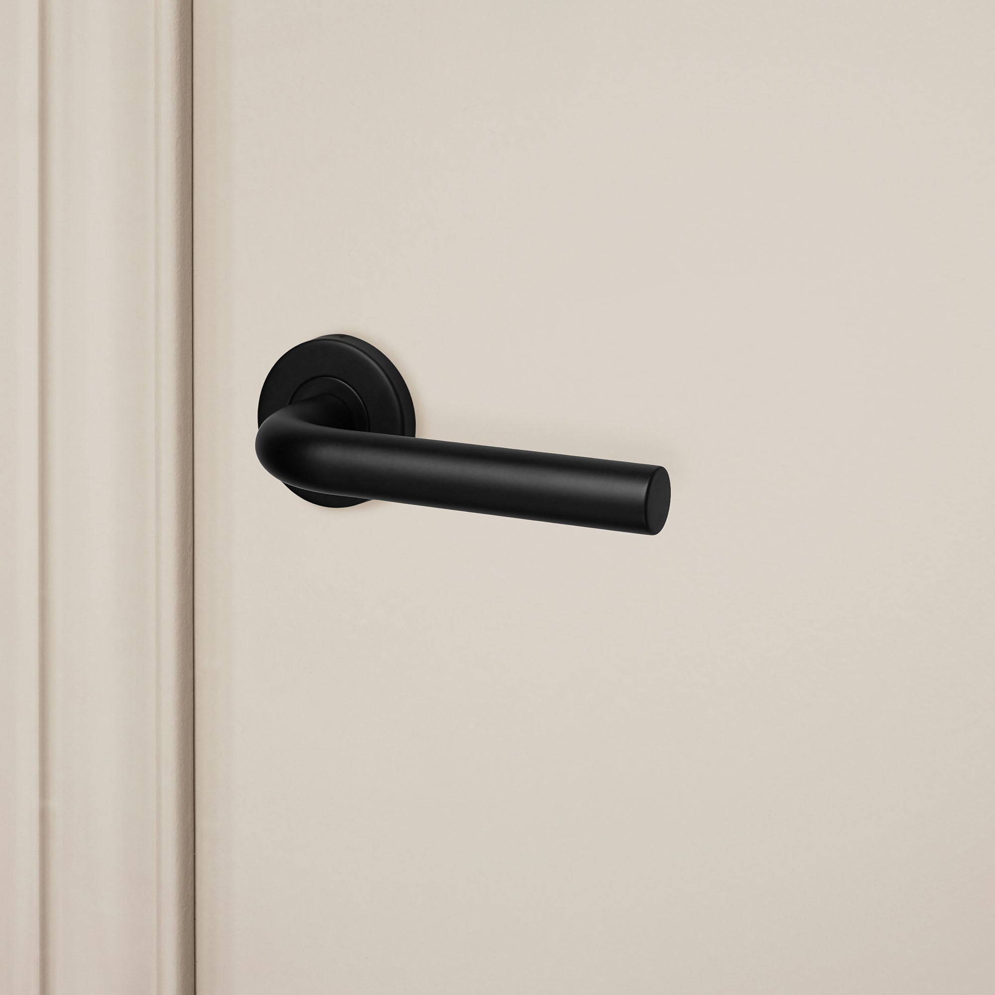 Der schwarze Türgriff Oristano mit runder Rosette ist eine stilvolle Ergänzung für jedes Interieur. Die matte, tiefschwarze Oberfläche verleiht der Tür sofort eine moderne und kraftvolle Note, während die elegante, schlanke Form für einen edlen Look sorgt. Eine perfekte Balance aus Eleganz und Charakter.