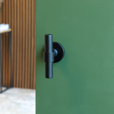 Der schwarze Türgriff Pesaro mit runder Rosette besticht durch seine elegante, einzigartige Form und angenehme Haptik. Das Modell L/T ist sofort ein Blickfang und dennoch dezent genug, um sich harmonisch in jedes Interieur einzufügen. Anders, aber nie zu aufdringlich.