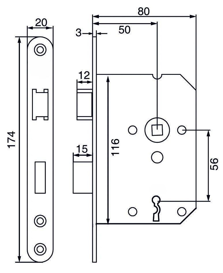 Dieses Schloss passt für fast alle Standardtüren in den Niederlanden. Überprüfen Sie jedoch unbedingt vorher den Dornmaß. Er beträgt 50 mm. Da dieses Schloss einen Lochabstand von 56 mm hat, ist es wichtig, dass Sie Türbeschläge mit exakt demselben Lochabstand wählen. Dies ist der Abstand zwischen der Mitte des Grifflochs und der Mitte des Schlüssellochs. Wenn Sie darauf achten, stellen Sie sicher, dass Ihre neuen schwarzen Türrosetten oder -beschläge perfekt passen.