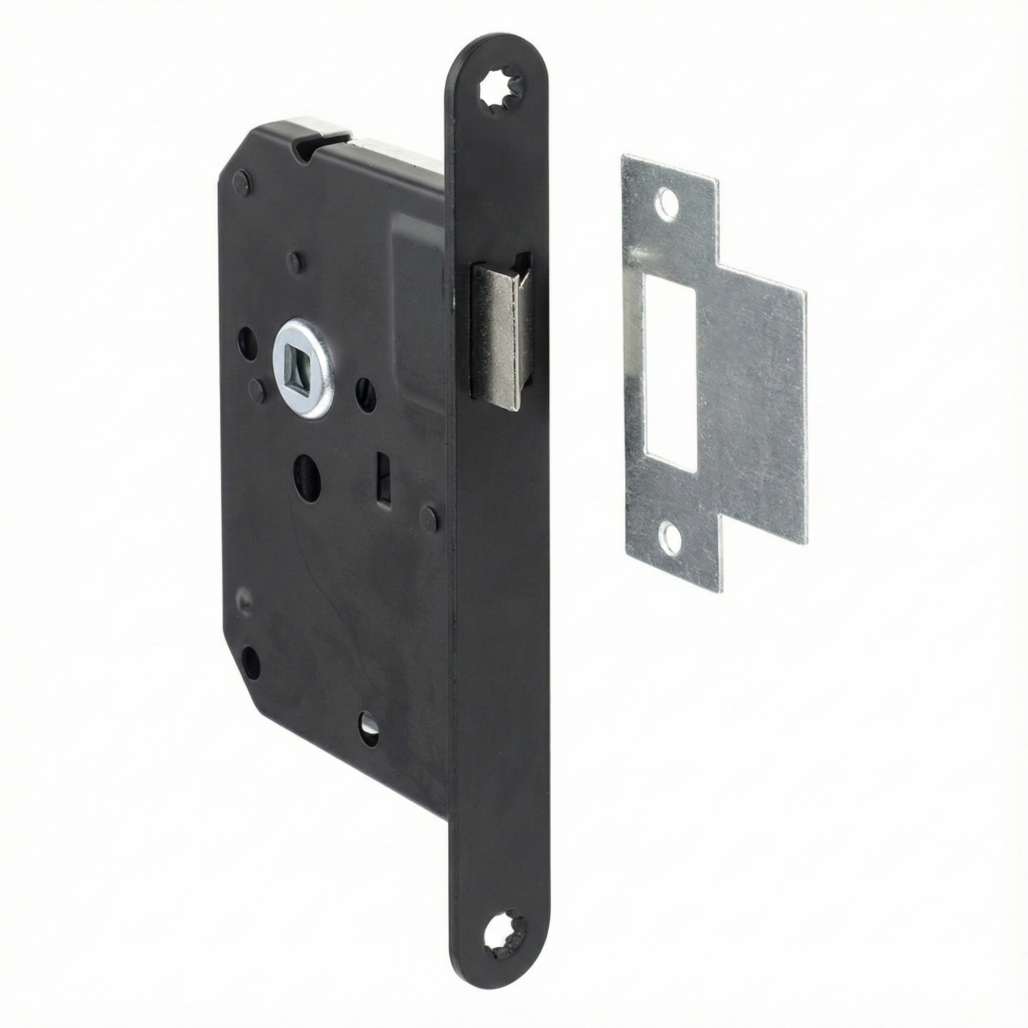 Haben Sie sich für schwarze Türgriffe entschieden? Dann ist ein passendes Einsteckschloss mit schwarzer Abdeckplatte ein absolutes Muss. Dieses Lavuzo -Einsteckschloss wurde speziell für Türen entwickelt, die nicht abgeschlossen werden müssen, wie beispielsweise Türen zum Wohnzimmer oder zur Küche. Die tiefschwarze Pulverbeschichtung verleiht ihm einen eleganten, modernen Look, der perfekt zu einem industriellen oder minimalistischen Interieur passt.