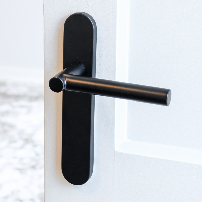 Der schwarze Türgriff Grosetto mit abgerundeter Rosette ist eine stilvolle Ergänzung für jede Innentür. Die abgerundeten Formen und die matte, schwarze Oberfläche verleihen ihm eine ruhige und elegante Optik, die perfekt zu skandinavischen, japanischen, minimalistischen und Hotel-Chic-Einrichtungen passt.