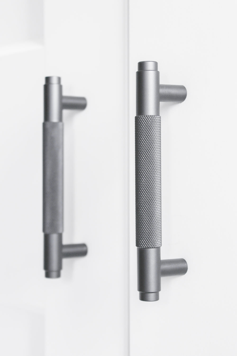 Der 192 mm lange Griff verleiht größeren Fronten, wie beispielsweise hohen Schränken und breiten Küchenschubladen, eine harmonische Silhouette. Die einzigartige Riffelung sorgt für eine hochwertige Haptik und betont die Tiefe des Anthrazittons. Dieser Griff ist ideal, um einen Hauch von Industrie-Chic zu verleihen, ohne dabei zu aufdringlich zu wirken. Er fühlt sich warm an und sieht außergewöhnlich stilvoll aus.
