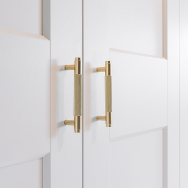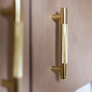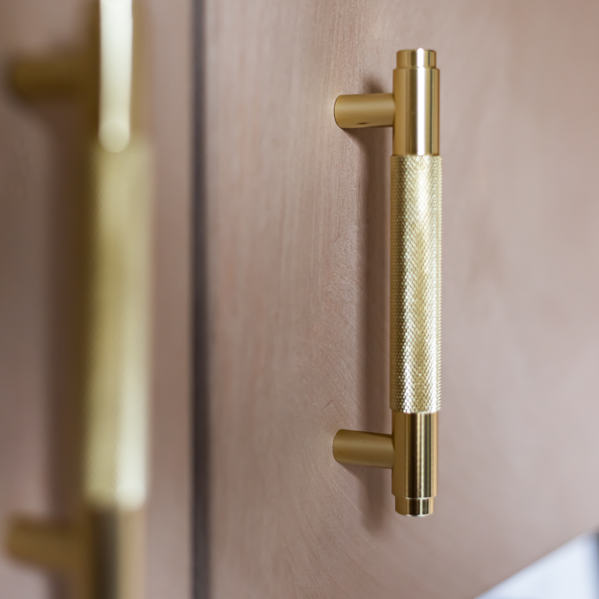 Dieser mattgoldene Griff mit geriffelter Oberfläche ist eines jener Details, die Ihrem Schrank oder Ihrer Schublade sofort ein besonderes Ambiente verleihen. Die geriffelte Oberfläche sorgt für einen Hauch von Charakter, während der warme, matte Goldton eine luxuriöse und zugleich beruhigende Wirkung erzielt.