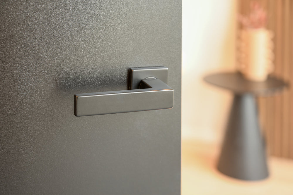 Ihre persönlichen Vorlieben und die Art der Tür entscheiden, welches Design am besten geeignet ist. Die Serie Imperio bietet Ihnen die nötige Flexibilität. Für einen besonders modernen und kompakten Look können Sie die Ausführung mit einemquadratische RosetteDadurch werden die kantigen Formen des flachen Griffs zusätzlich betont. Haben Sie bereits Bohrlöcher oder möchten Sie Ihrer Tür einen markanteren Akzent verleihen? Dann ist eine Türrosette die perfekte Lösung. Die Rosette verleiht der Tür ein kraftvolles, solides Aussehen und unterstreicht das industrielle Ambiente Ihres Zuhauses.