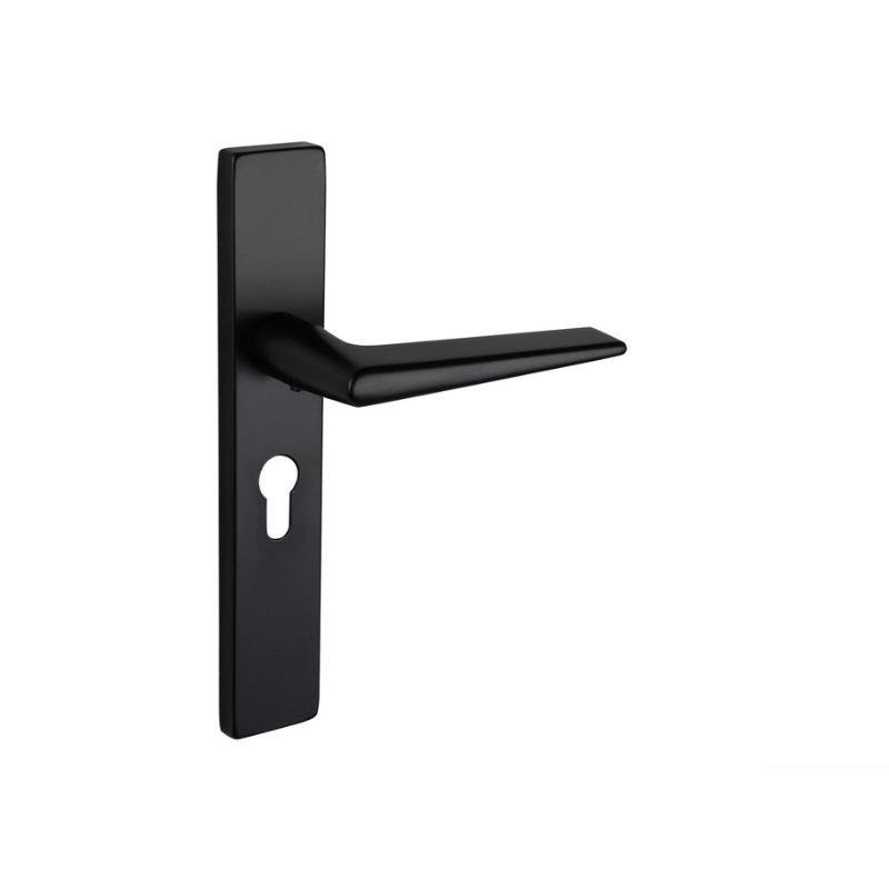 Der schwarze Türgriff Modena mit rechteckiger PC55-Rosette verleiht Ihrer Innentür einen robusten, industriellen Look. Die schlanke, konische Form, die durch die stabile rechteckige Rosette und die matte, schwarze Oberfläche entsteht, sorgt für einen Hauch von Stärke und Charakter.
