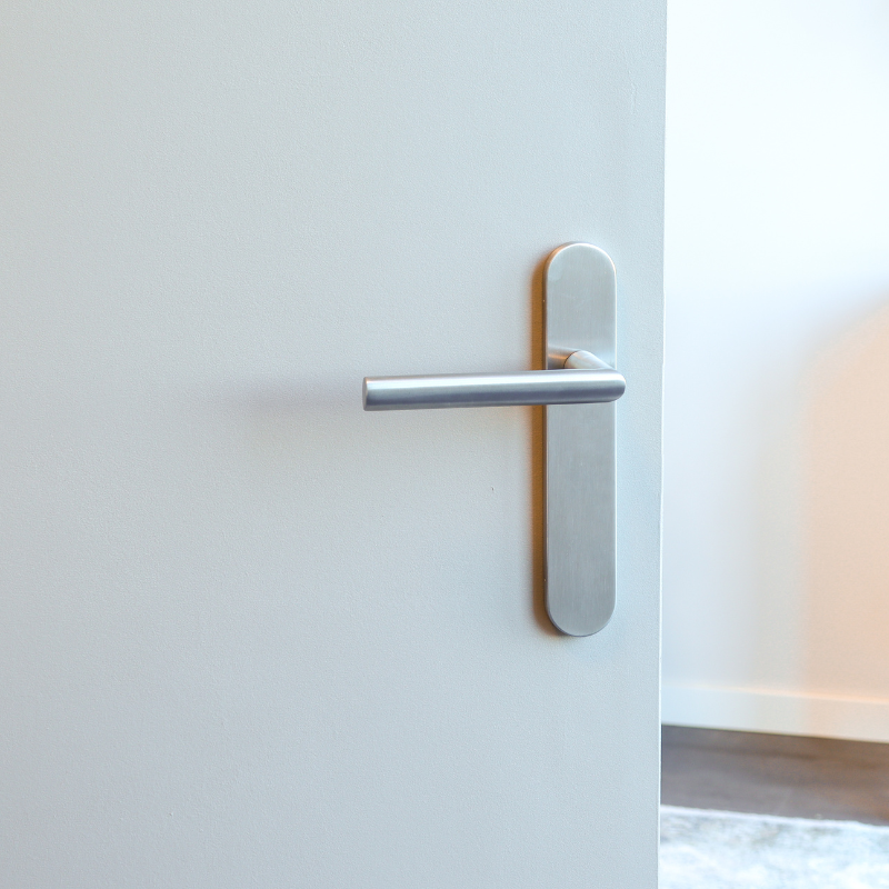 Diese Ausführung ist für Innentüren ohne Schloss konzipiert, beispielsweise für Durchgänge oder Zimmertüren. Der Türgriff verfügt über einen stabilen Stift und eine Standardbefestigung und ist für Türen mit einer Stärke von 38 bis 42 mm geeignet. Die Edelstahloberfläche ist verschleißfest, fleckenabweisend und leicht zu reinigen – ideal für stark frequentierte Bereiche.